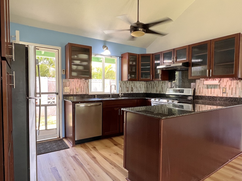 The home is just a short drive to schools, restaurants, shops, the Kapaa bike path and the beach. Rent includes landscape maintenance but all utilities are the responsibility of the tenants. The photovoltaic panels should help keep electric costs down. Sorry, no pets. Renters insurance is required.